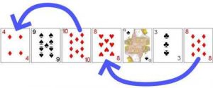 در صورتی که یکی از این دو کارت یا هر دویشان پیش از این به ترکیب دیگری اضافه شده‌ بودند و در ادامه خودشان هم کارت داشتند کل ترکیبی که سمت راست قرار دارد برداشته‌ می‌ شود و به ترکیبی که در سمت چپ قرار دارد اضافه می گردد.